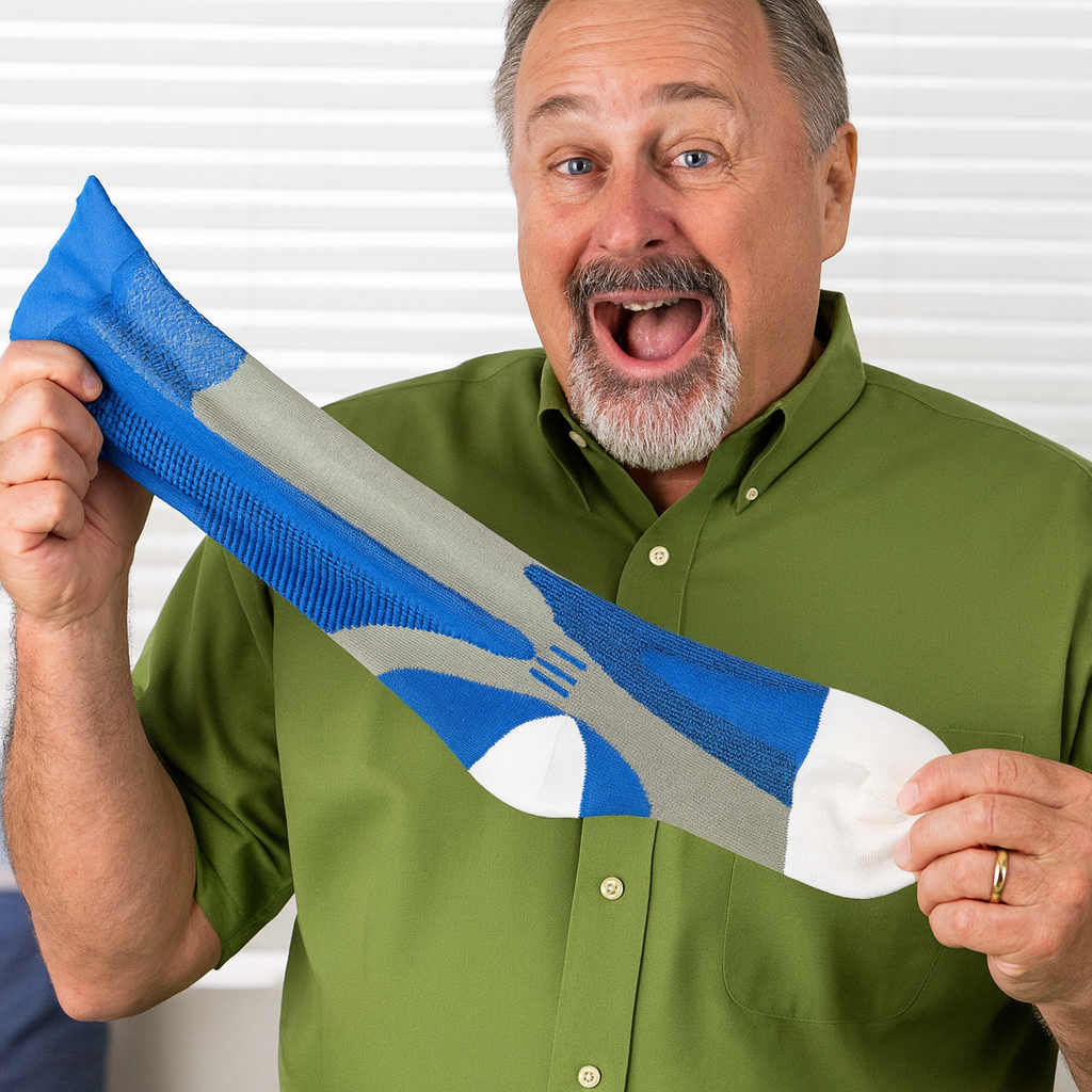 Peters Geschichte änderte sich schlagartig, nachdem er zufällig einen alten Freund traf – heute ein angesehener Gefäßspezialist. Bei diesem Treffen lernte Peter die revolutionären SatoriSocks Pro Socken kennen – ein Produkt, das auf einer alten japanischen Methode basiert und sofortige Linderung bei Schmerzen und Schwellungen in Beinen und Füßen verspricht.
